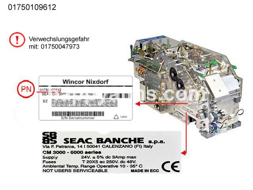 Wincor Nixdorf SEAC CM 3000 USB Scanner unit assd. PN: 01750109612, 1750109612