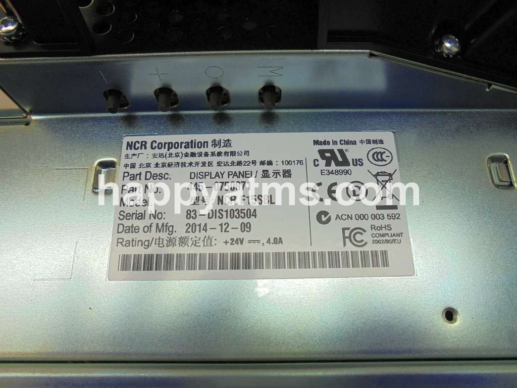 NCR DISPLAY 15" SUNLIGHT READABLE PN: 445-0750071, 4450750071